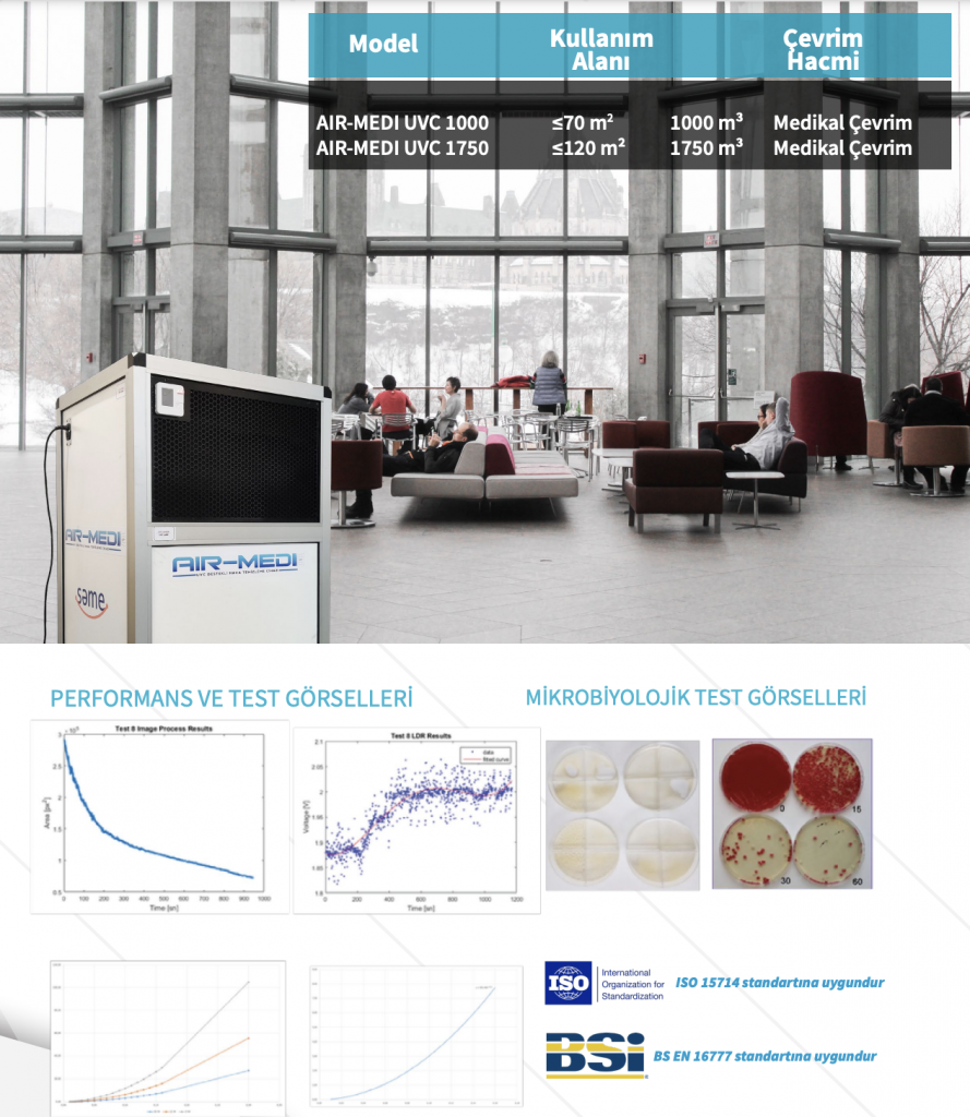 AIR-MEDI ortam havasını filtre dizini ( G4, Aktif Karbon ve HEPA / H-13) ve UVC desteğiyle temizlemek amacıyla kapalı mekanlarda kullanılan hava arıtma cihazıdır. AIR-MEDI tasarım çalışmaları 2015 yılında başlamış olup, proje BAŞKENT ÜNİVERSİTESİ, EKİN ÖN KULUÇKA MERKEZİ GİRİŞİMCİLİK YARIŞMASINDA 2016 Yılı Birincilik Ödülünü almış bulunmaktadır. İBÜTEM teknoloji desteği ve HYT Grup üretim gücü ile üretilen AIR-MEDI UVC DESTEKLİ HAVA TEMİZLEME CİHAZININ sağlık alanında yapacağı katkılar her iki firma için gurur kaynağıdır.